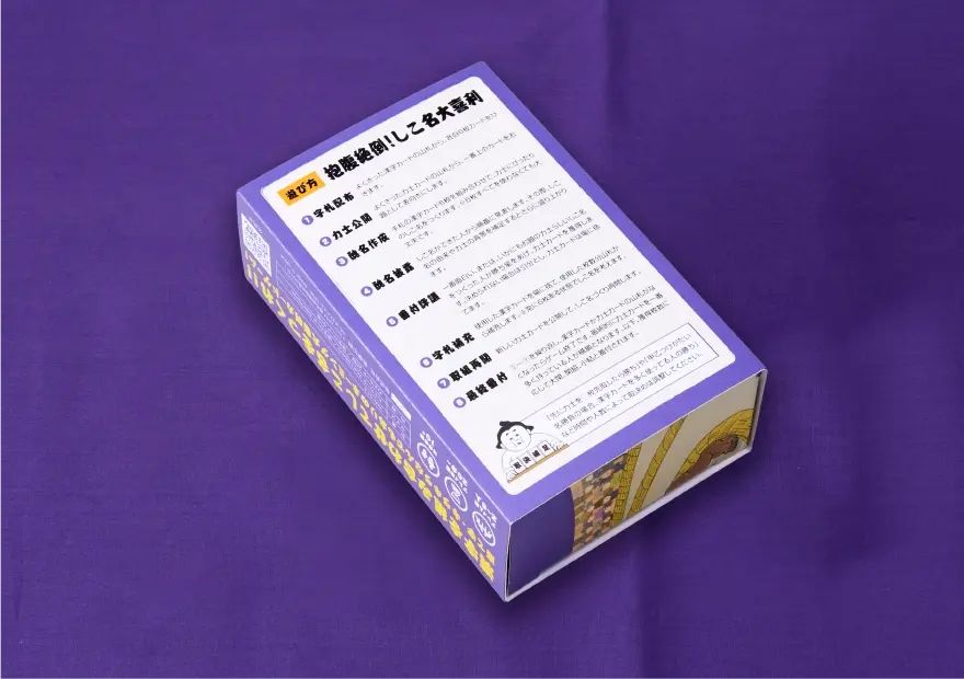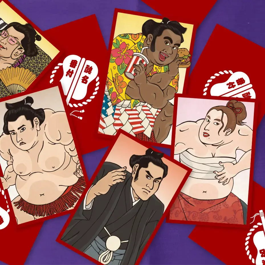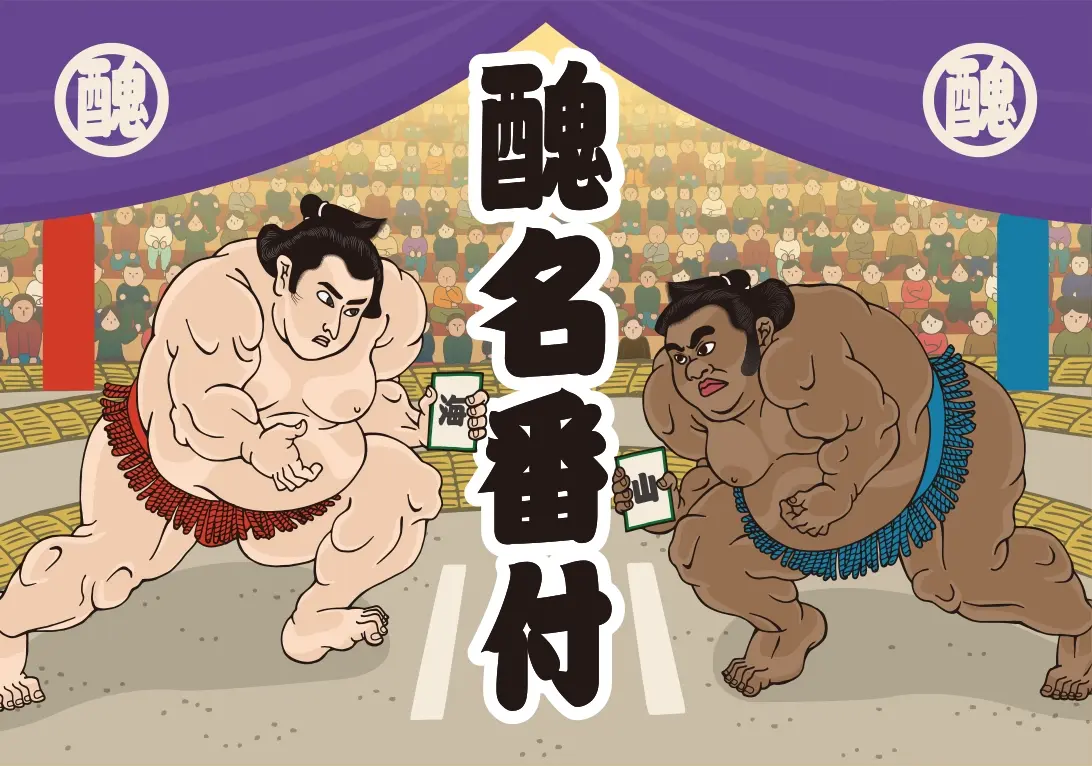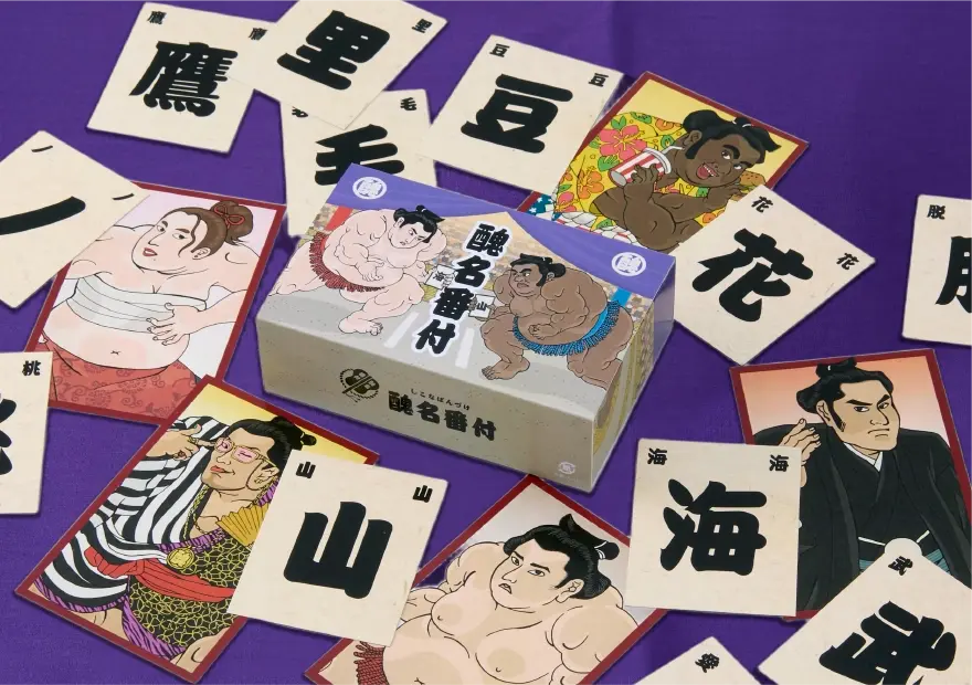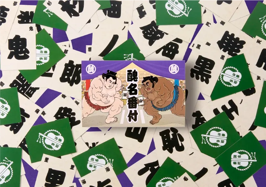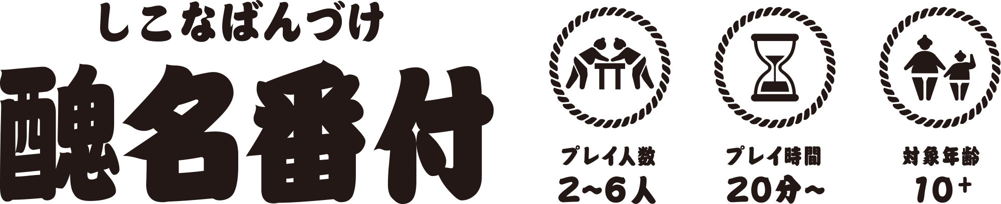 プレイヤーは名付け親方です。6枚の手札の中から漢字を組み合わせて、キャラクターたちに面白しこ名やいかにもそれっぽいしこ名をつけてあげましょう。単純明快なルールで、相撲に詳しくない人でもすぐに遊べることができます。さぁ、笑いと驚きのパーティーゲーム、いざお立ち会い!!
