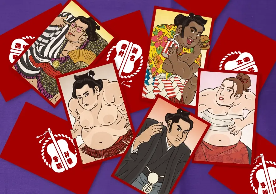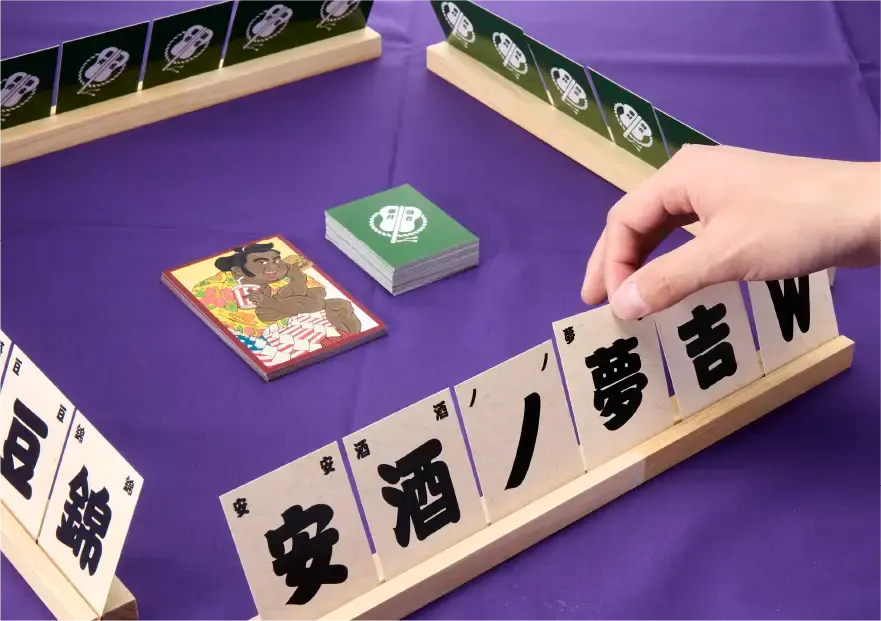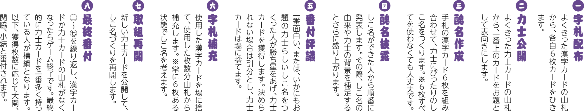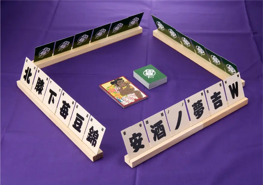 「力士を◯枚先取したら勝ち」や「甲乙つけがたい名勝負の場合、漢字カードを多く使ってる人の勝ち」など時間や人数によって取決めは調整してください。